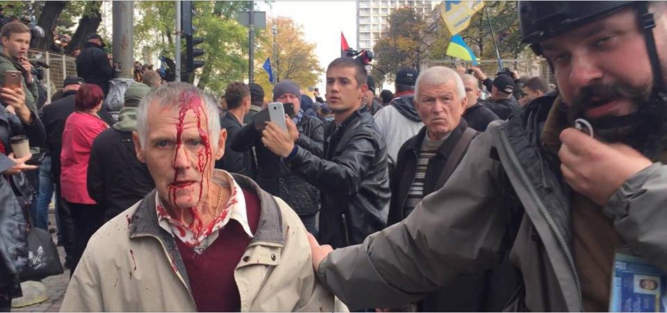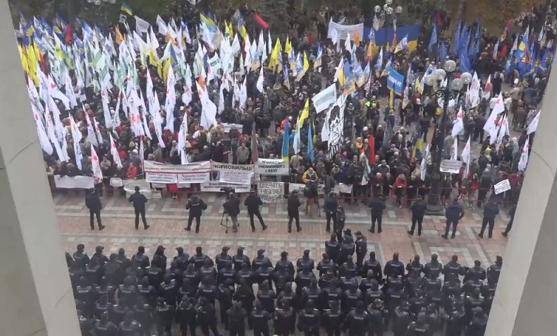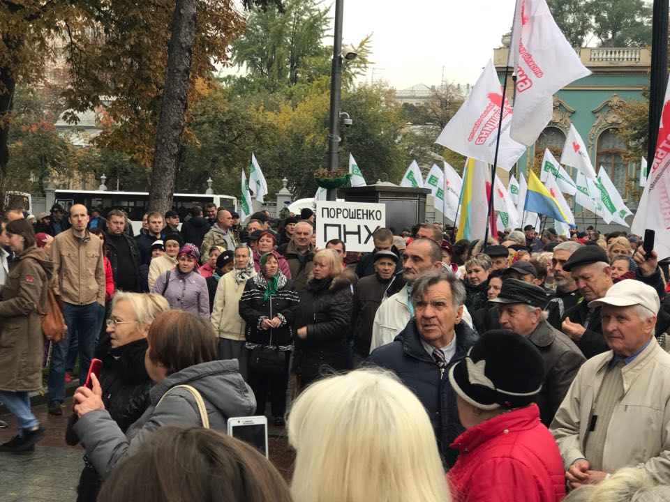 9:43  Ого, а это что-то новое. Слов "ПНХ" в отношении Порошенко еще никто не употреблял. По крайней мере, так близко к Банковой. На заднем плане маячат зеленые флаги "Самопомощи".
