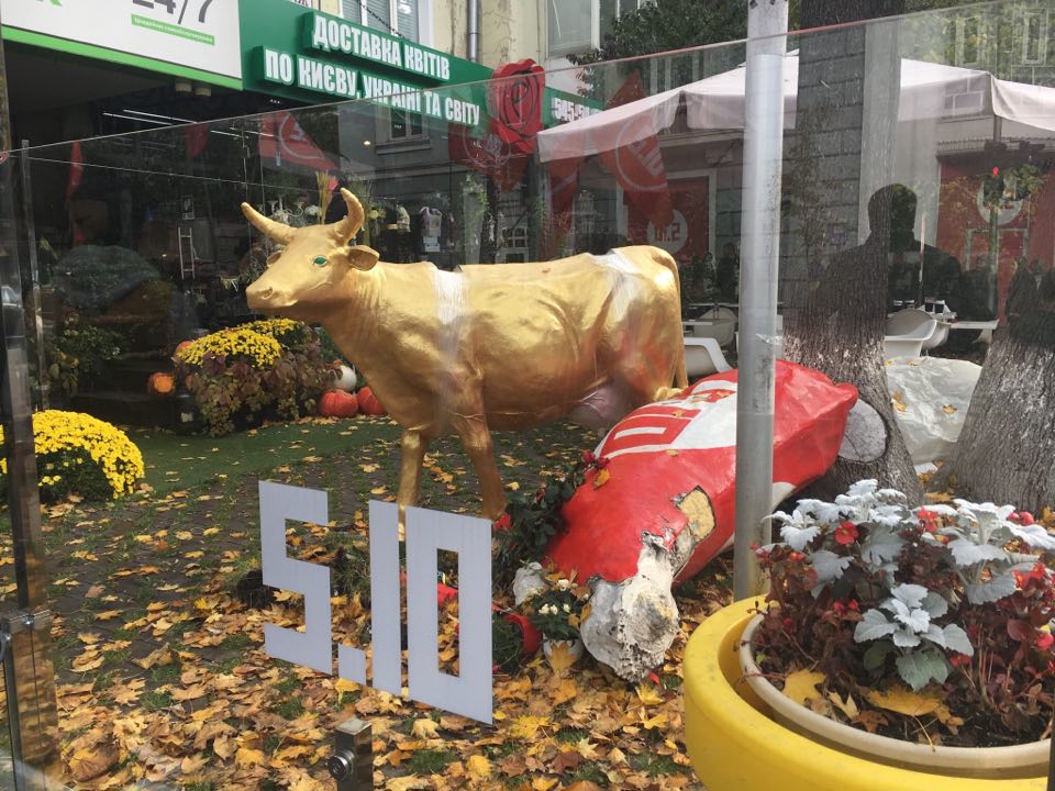 11:38  Бизнесмен Геннадий Балашов восстановил свою знаменитую корову в центре Киева, ранее разбитую радикалами.
