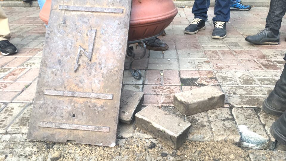 17:33  Митингующие обсуждают, выкапывать ли брусчатку. Решили пока не провоцировать силовиков. Но камни заготавливают.