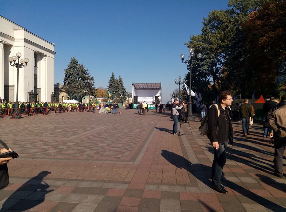 15:40  Под Радой началось оживление. Активисты прибывают и окружают парламент. Нацгвардия надела шлемы.