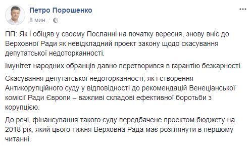 10:44  Неожиданно. Петр Порошенко заявил, что внес законопроект о снятии депутатской неприкосновенности.