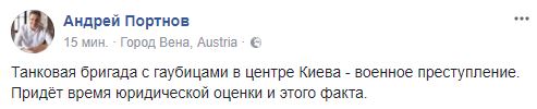 13:28  Юрист Андрей Портнов пишет, что за гаубицы и танковую бригаду в центре Киева придется отвечать по закону.