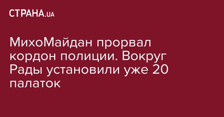 Участники МихоМайдана прорвались через кордон Нацполиции на пересечении улиц Грушевского и Садовой и пришли к Верховной Раде, где начали устанавливать палатки. Об этом сообщает корреспондент "Страны".