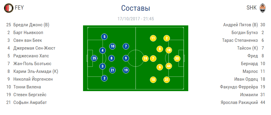 19:37 И наша команда и "Фейеноорд" после перерыва на матчи сборных успели провести по одной встрече в рамках чемпионатов Украины и Голландии.