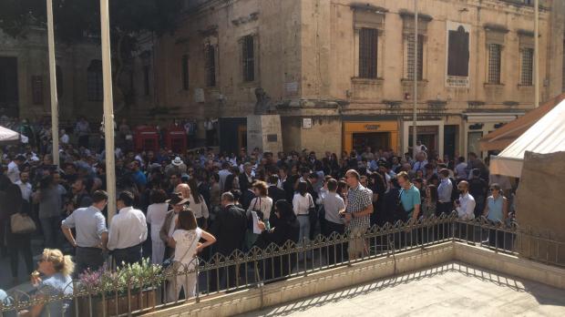 "Среди присутствующих - депутаты парламента, в том числе лидер оппозиции Адриан Делия, бывший оппозиционный лидер Саймон Бусуттил, известные юристы и бывший премьер-министр Лоуренс Гонзи", - говорится в сообщении.
