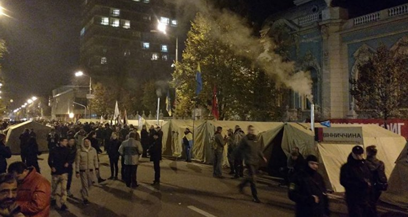 Последние столкновения между участниками акции протеста и правоохранителями произошли вечером 17 октября из-за попытки оттеснить митингующих от забора по периметру парламента, сообщают РИА Новости.