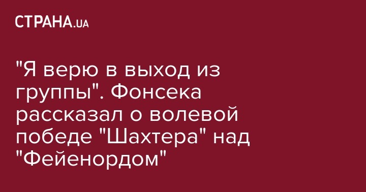 Главный тренер "Шахтера" Паулу Фонсека прокомментировал волевую победу его подопечных над "Фейеноордом" в Лиге чемпионов.