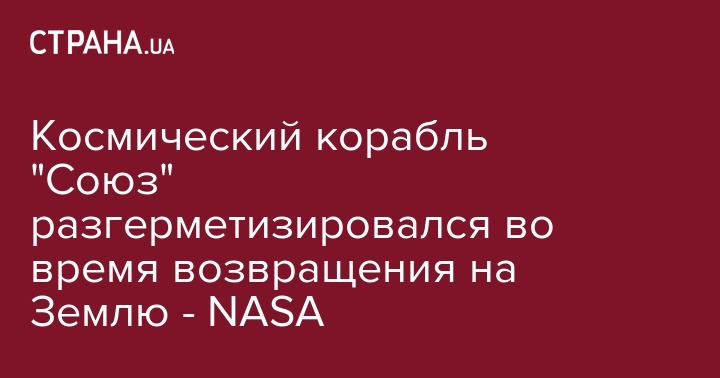 Космический корабль "Союз" разгерметизировался во время возвращения на Землю - NASA