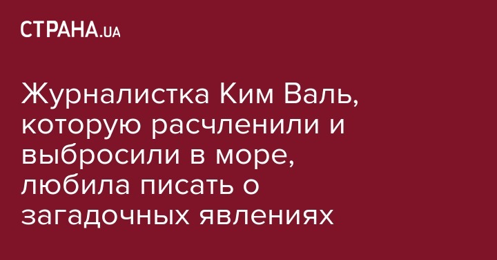 Журналистка Ким Валь, которую расчленили и выбросили в море, любила писать о загадочных явлениях