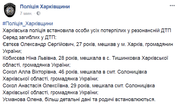 В Харькове опознаны все погибшие в жутком вечернем ДТП. Об этом на Facebook передает пресс-служба областной полиции.
