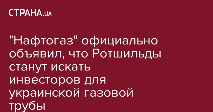 "Нафтогаз" официально объявил, что Ротшильды станут искать инвесторов для украинской газовой трубы
