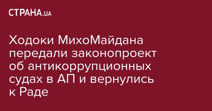 "Мы передали президенту законопроект об антикоррупицонном суде", - сказал Левченко группе из митингующих, которые ожидали их на пересечении улиц Институтский и Банковой и выкрикивали разные лозунги в мегафон.