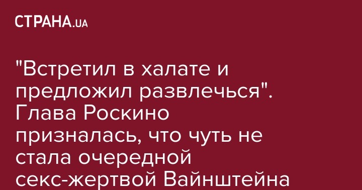 Позже Вайнштейн посоветовал ей не думать о том, что произошло, и все забыть, добавила Мцитуридзе. "Я не думала, что это его обычная манера общаться с женщинами", - заявила глава "Роскино". Она отметила, что, несмотря на то, что Вайнштейн - один из самых известный продюсеров в Голливуде, это не дает "ему права вести себя так". "Мы должны использовать эту историю, чтобы подобное в будущем не повторялось", - заключила Мцитуридзе.
