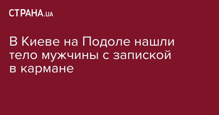 В Киеве на Подоле нашли тело мужчины с предсмертной запиской в кармане. Об этом сообщает пресс-служба полиции Киева.
