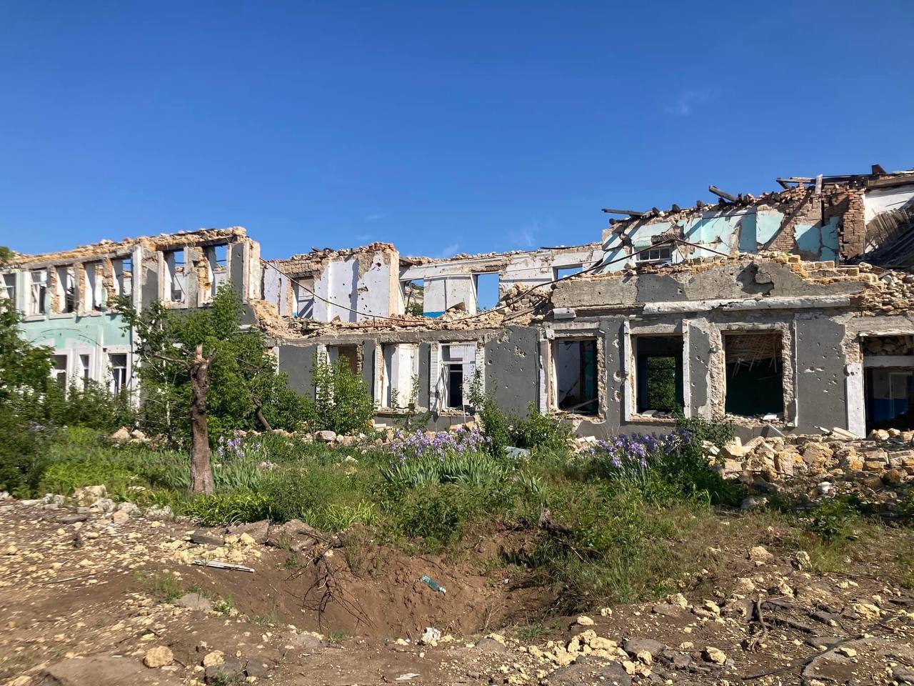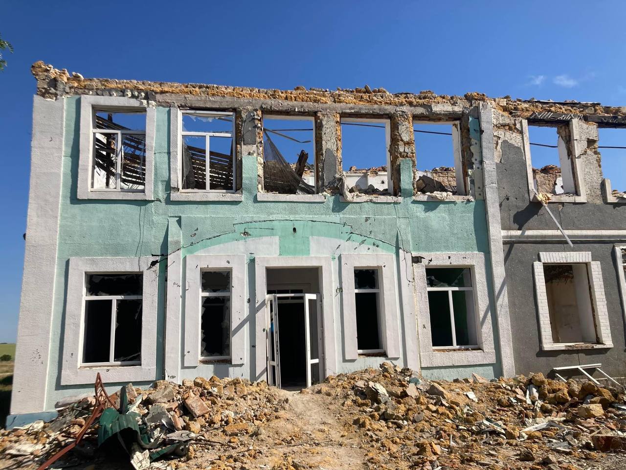 19.28 Фото здания школы в селе Раковка Херсонской области, разрушенного в результате обстрелов.