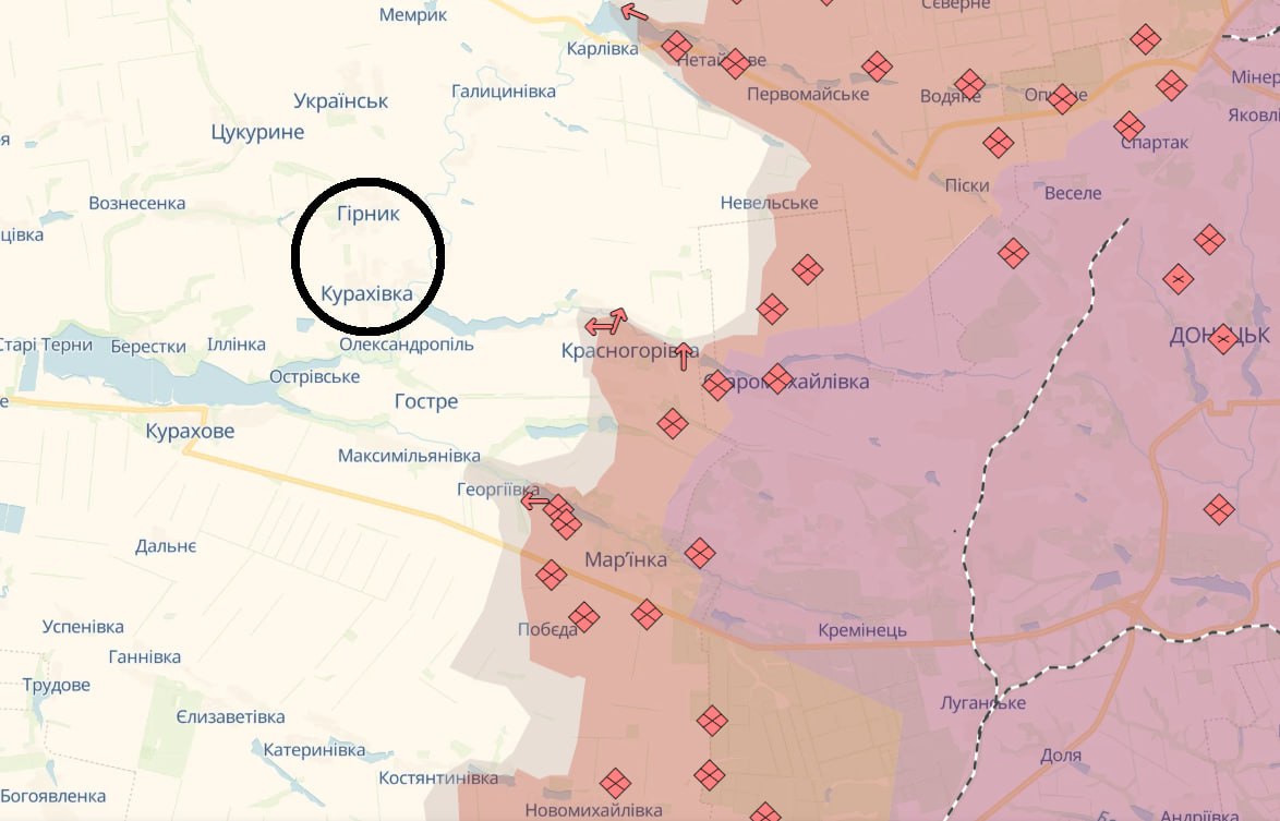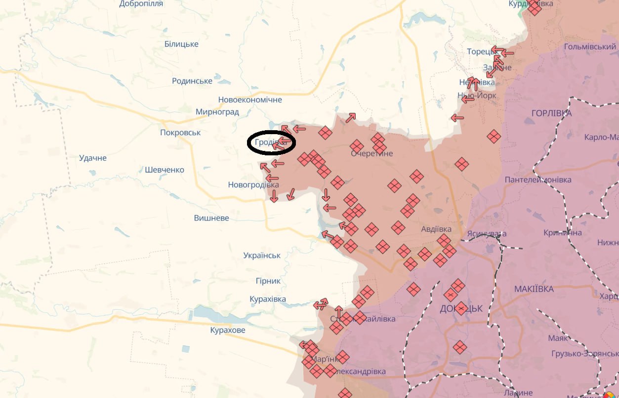 Карты из открытых источников показывают приближение российских подразделений к селам Гродовка, Красный Яр и Новогродовка к востоку от Покровска. Это может свидетельствовать о скором прорыве российских войск, считают эксперты.