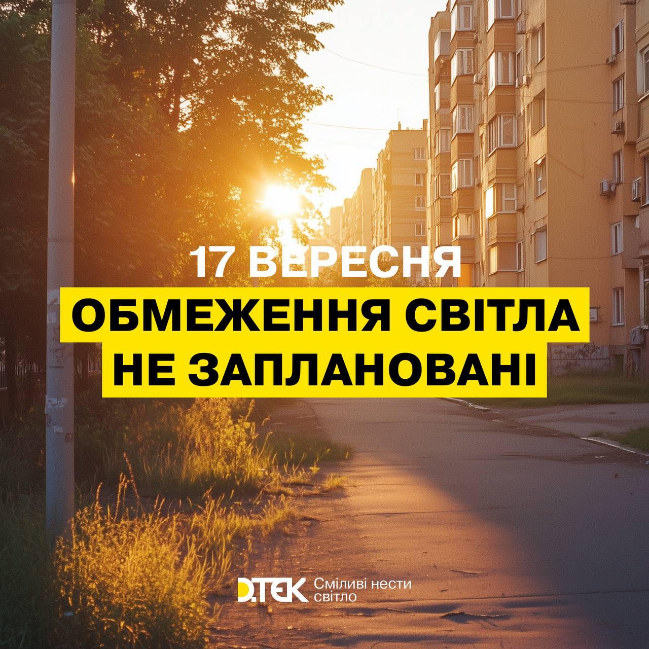 17:24 Отключения света завтра не планируются, сообщает ДТЭК.