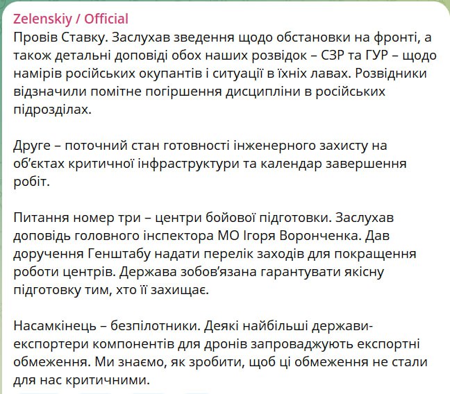 18:54 После критики качества подготовки в учебках ВСУ, президент Владимир Зеленский дал поручение Генштабу предоставить перечень мер по улучшению их работы.