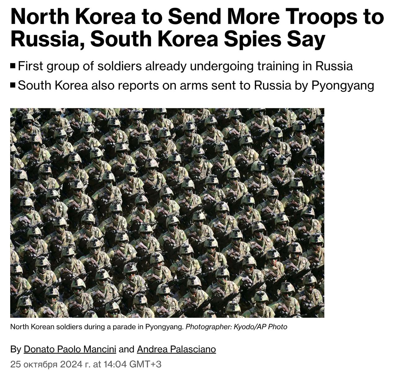 1500 солдат были отправлены на подготовку в РФ и вторая партия готовится вскоре к ним присоединиться. Всего запланировано развертывания около 10 тыс. северокорейских солдат.