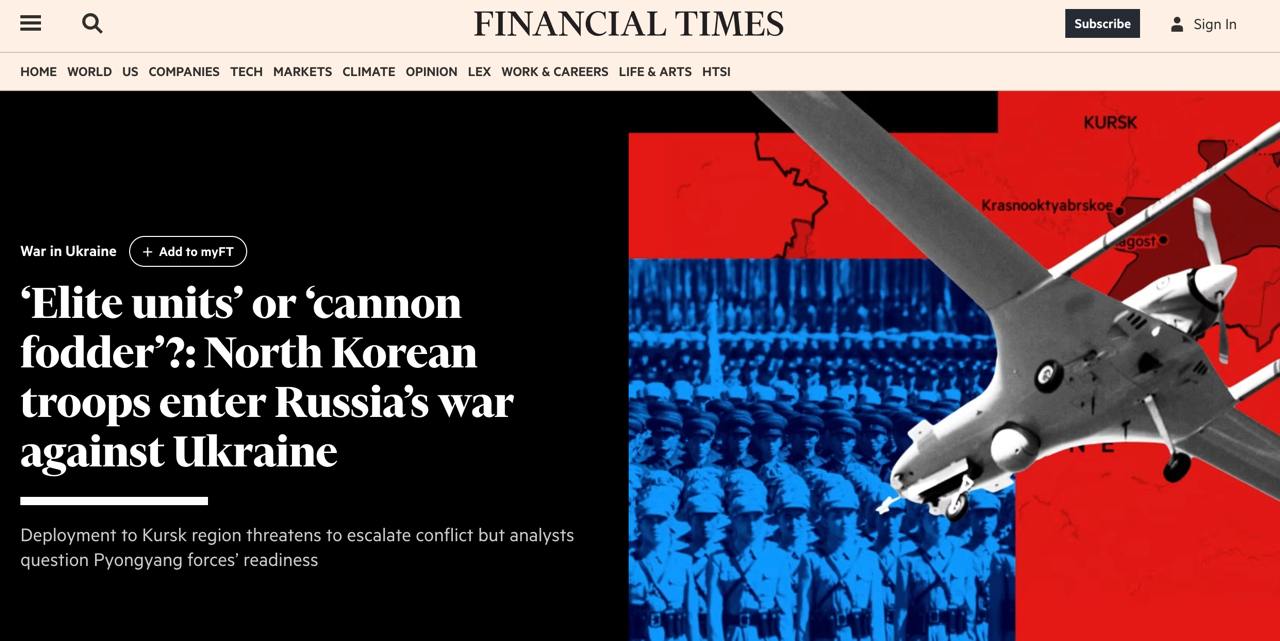 10.48 Около 3000 северокорейских солдат размещены в 50 км от украинской границы в казармах в Курской области, сообщает Financial Times со ссылкой на источники в украинской разведке.
