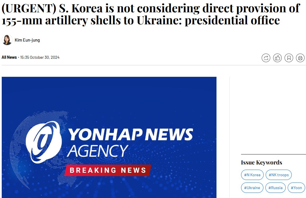 Ранее сообщалось, что Южная Корея является ключевым поставщиком таких снарядов в США, откуда они и попадают в Украину.