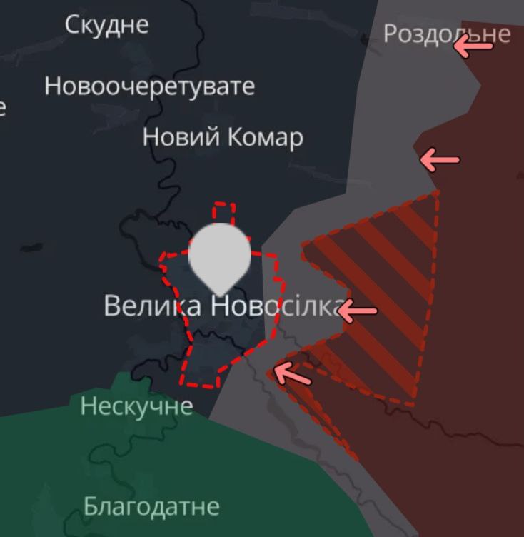 Севернее Великой Новосёлки войска РФ достигли трассы, соединяющей город с поселком Богатырь. Ещё одна дорога на север проходит через ключевое село Новый Комар (в трёх километрах от линии фронта). Судя по всему, россияне попытаются прорваться к нему.