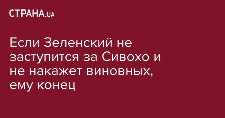 Посмотрел нападение на Сивохо. Если Зеленский не заступится за него и не накажет виновников - ему конец. Да и Украине конец. Дело не в Сивохо, а в возможности запустить мирный процесс. Эта война уничтожит Украину. Зачинщики войны обесценят активы, и убегут на Запад. Остальные останутся в могилах.