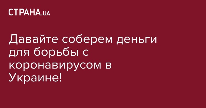 Давайте параллельно соберём деньги и тоже поможем закупить медицинское оборудование и создать условия для лечения людей там, где сможем.