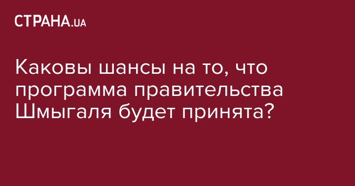 Завтра в парламенте рассматривается программа правительства Д.Шмыгаля. Голосов может и не хватить. Решающими факторами будут количество голосов от фракции «Слуга народа» (если будет меньше 200, то может и не хватить), позиция группы «Доверие» (если они поддержат программу, то шансы на ее утверждение будут), и число голосов в поддержку программы правительства Д.Шмыгаля от внефракционных (для ее утверждения желательна поддержка не менее 12 внефракционных депутатов).