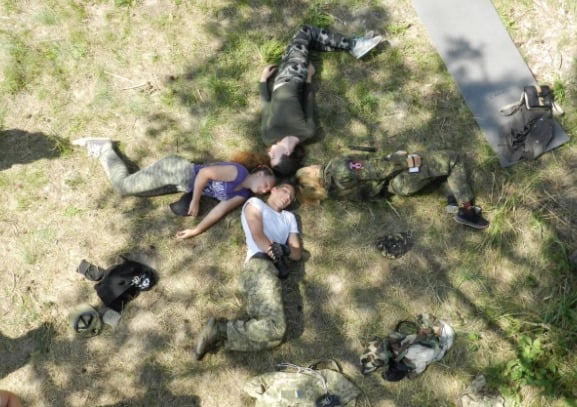 Эти дети весело изображающие нацистскую свастику - участники молодежного лагеря Правого сектора "Коммандос". В лагере дети изучают взрывное дело. Руководит лагерем сидевшая за убийство поэтесса Диана Виноградова (Камлюк). На видео ее выступление против ж_дов на Майдане в 2013 году.