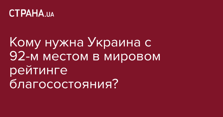 Ну, кому теперь нужна Украина, занявшая 92-е место в мировом рейтинге благосостояния?! Кстати, для расчета индекса принимались во внимание 12 пунктов: безопасность, личная свобода, управление, социальный капитал, инвестиционный климат, условия предприятий, доступ к рынку и инфраструктура, экономическое качество, условия жизни людей, здоровье, образование и природная среда.