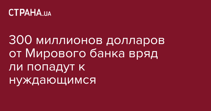 Этот займ /кредит/ в $300 млн. якобы должен поддержать расширение социальной защиты украинцев в ближайшие годы, помочь людям и домашним хозяйствам, которые потеряли работу или источники дохода из-за пандемии.