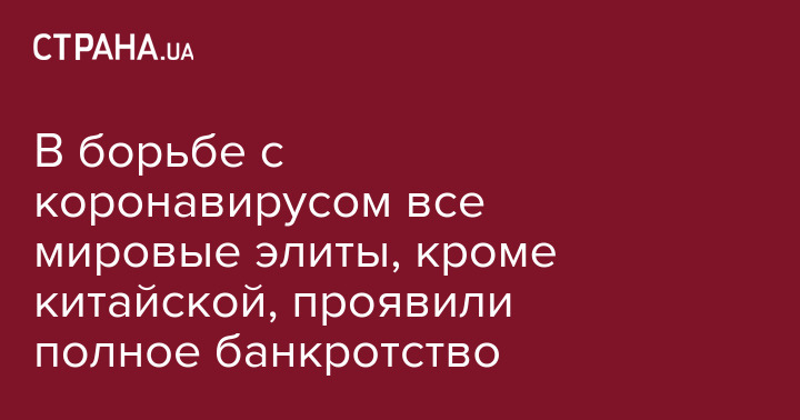 Впрочем европейские и, тем более, американские власти вели себя немногим лучше. Все элиты, кроме китайской, продемонстрировали полное интеллектуальное и организационное банкротство в своей реакции на эпидемию короновируса . А украинские власти вдобавок ещё тупость и маразм.