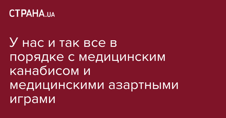 Тому що з медичним канабісом, медичними азартними іграми і медичної, навiть клінічною, Верховною Радою у нас все i так непогано.