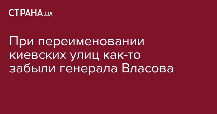 При переименовании киевских улиц почему-то забыли увековечить Андрея Андреевича Власова. Биография у него самая что ни на есть подходящая: выходец из села, воевал с русскими националистами на Кавказе и в Крыму, боролся с нацизмом и коммунизмом, пал жертвой сталинского режима. К Киеву имеет непосредственно отношение - руководил обороной украинской столицы от нацистских оккупантов. В общем, достойнейший человек, не какой-то "пацифист" Толстой, воспевавший подвиги русских оккупантов в украинском Севастополе.