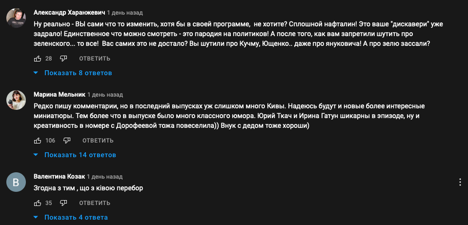 На это зрители обращают внимание даже в комментариях под видео с концертом "Квартала" на YouTube – мол, "слишком много Кивы".