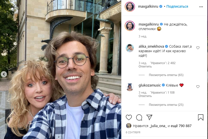 Сам Галкин ранее также отреагировал на сообщения о разладе в семье, опубликовав совместное фото с супругой и подписью "Не дождетесь, сплетники".