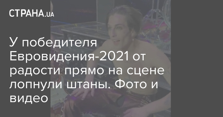 Итальянская рок-группа Måneskin минувшей ночью отметилась не только победой на международном песенном конкурсе Евровидение-2021, но и курьезным случаем. Солист коллектива Давид Дамиано так радовался триумфу, что у него лопнули штаны.