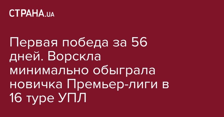 Первая победа за 56 дней. Ворскла минимально обыграла новичка Премьер-лиги в 16 туре УПЛ