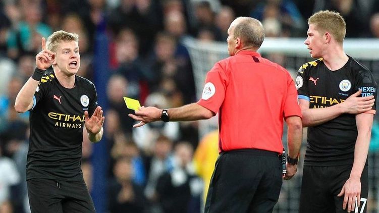 Александр Зинченко получает предупреждение. Фото: instagram.com/zinchenko_96