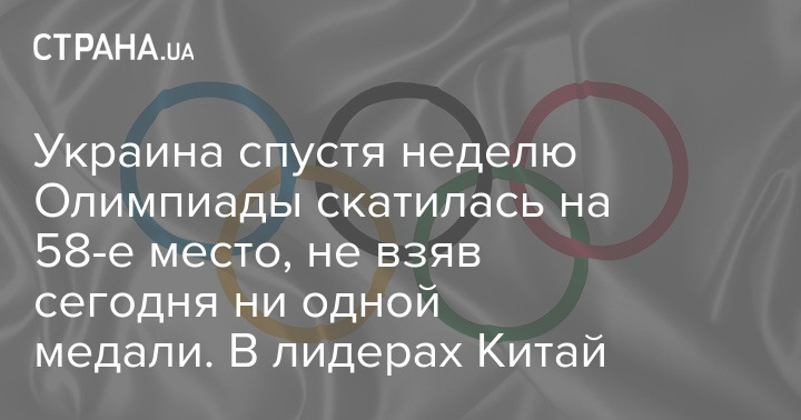 Украина спустя неделю Олимпиады скатилась на 58-е место, не взяв сегодня ни одной медали. В лидерах Китай