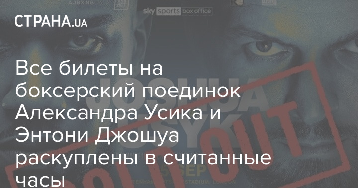 На поединок за звание чемпиона мира по боксу в супертяжелом весе (WBA, WBO и IBF) между украинским боксером Александром Усиком и Энтони Джошуа (Британия) проданы все билеты. Это произошло за 24 часа после начала их продажи, передает боксерский портал "Бокс говорит".