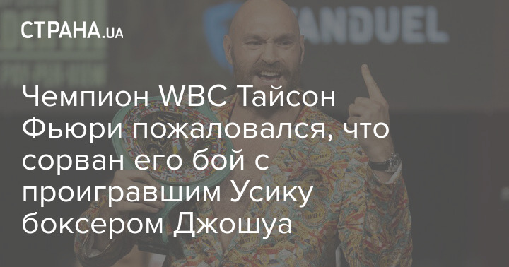 Чемпион WBC Тайсон Фьюри пожаловался, что сорван его бой с проигравшим Усику боксером Джошуа