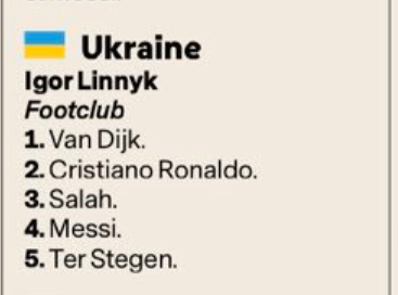А звезды "Барселоны" Лионель Месси и Марк-Андре тер Стеген вошли только в пятерку от Игоря Линника. Об этом говорится в поименных результатах голосования, фото которых опубликованы в twitter-микроблоге Sport_Witness.