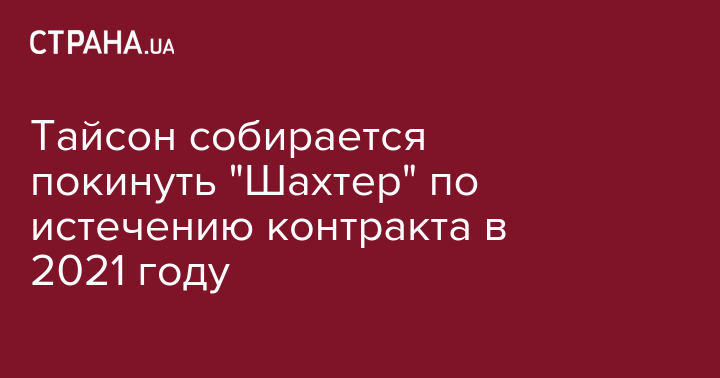 Капитан "Шахтера" Тайсон не хочет продлевать контракт с донецким клубом, который истечет летом 2021 года. Об этом сообщается на сайте "ТСН".
