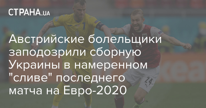 Ряд австрийских футбольных болельщиков заподозрили украинскую сборную в намеренном проигрыше в последней игре группового этапа Евро-2020. По их мнению, подопечные Андрея Шевченко настолько не хотели попасть в плей-офф на итальянцев, что готовы были пойти на риск в надежде на вероятный выход команды в следующий этап турнира с третьего места в группе.