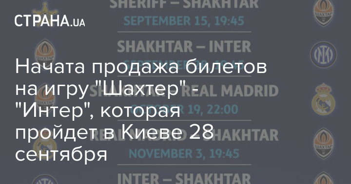 Начата продажа билетов на первую домашнюю игру "Шахтера" в групповом этапе Лиги чемпионов. Она состоится в Киеве во вторник, 28 сентября. "Горняки" примут миланский "Интер" на НСК "Олимпийский" в 19:45.