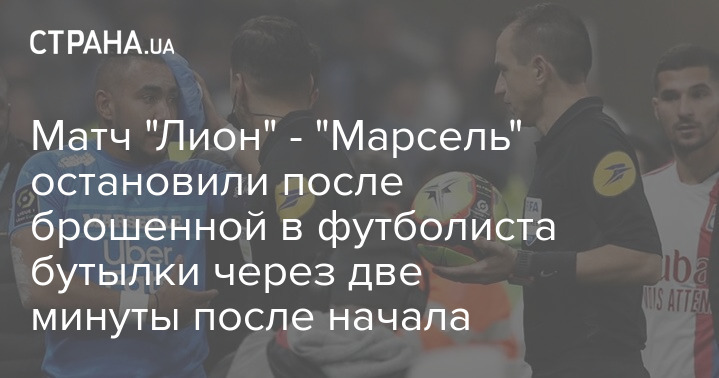 Матч между командами "Лион" — "Марсель" прерван из-за брошенной в футболиста бутылки. Фото: iz.ru
