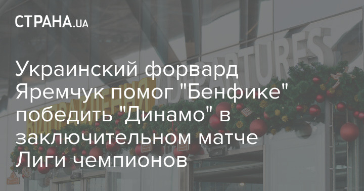Украинский форвард Яремчук помог "Бенфике" победить "Динамо" в заключительном матче Лиги чемпионов
