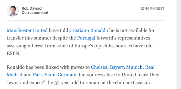 Журналисты писали об интересе к 37-летнему нападающему со стороны "Челси", "Баварии", "Реала", "ПСЖ" и "Ромы", однако новый тренер "Юнайтед" Эрик тен Хаг решил сохранить опытную, но возрастную звезду.